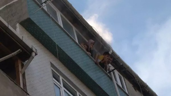 Yangını gören çevredeki vatandaşlar durumu polis, itfaiye ve sağlık ekiplerine bildirdi. Dairede yaşayan 4 kişilik aile anne, baba ve birisi engelli 2 çocuk evin penceresinde kurtarılmayı bekledi.