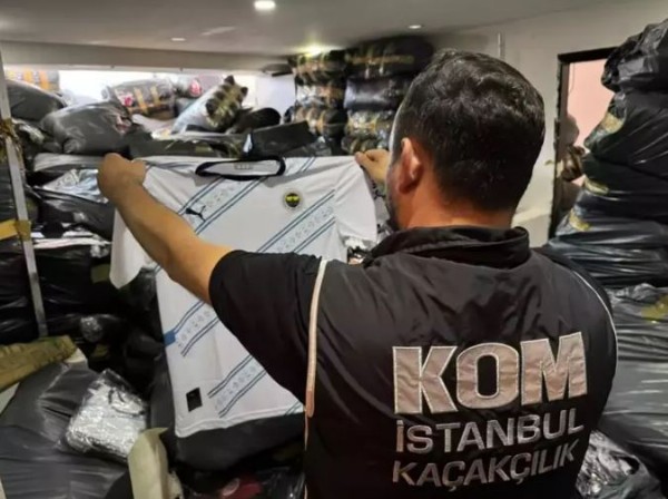 İstanbul'da yurt dışından kaçak olarak yurda sokulduğu iddia edilen ve piyasa değeri 250 milyon liranın üzerinde olan Galatasaray, Trabzonspor, Fenerbahçe ve Beşiktaş kulüplerine ait 180 bin 324 adet forma ele geçirildi.