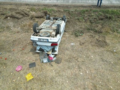 Afyonkarahisar’da yasanan trafik kazasinda kontrolden çikarak taklalar atip, sarampole giren aracin soförü kazayi sans eseri yara almadan atlatti.