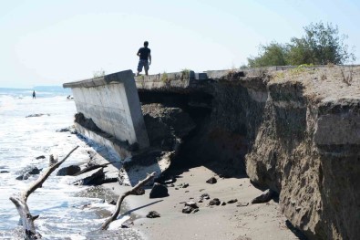 Samsun’un Atakum ilçesi sahilinde yasanan kiyi erozyonunda hirçin Karadeniz, yolu tutan beton blok çöktü. Ondokuz Mayis Üniversitesi (OMÜ) Insan Ve Toplum Bilimleri Fakültesi Cografya Bölümü Ögretim Üyesi Doç. Dr. Faruk Aylar, "Küresel isinmaya bagli olarak deniz seviyesi yükseldi. Dolayisiyla dalga asindirmasina bagli olarak kumsallarimiz, plajlarimiz yavas yavas yok oluyor. 5-10 sene içerisinde bu sahanin geriye dogru asinmasi devam edecek" dedi.