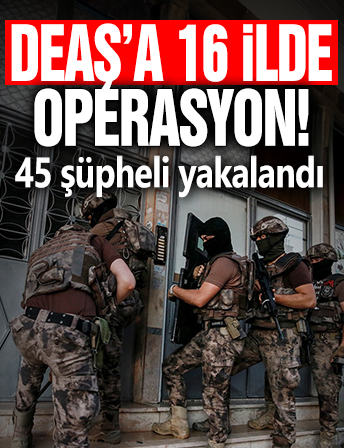 Emniyet Genel Müdürlüğü İstihbarat Başkanlığı ve Terörle Mücadele Daire Başkanlığı koordinesinde; İl Emniyet Müdürlüklerince Ankara, Antalya, Aydın, Düzce, İstanbul, İzmir, Kahramanmaraş, Kayseri, Kırşehir, Kilis, Kocaeli, Konya, Kütahya, Manisa, Sakarya ve Şanlıurfa olmak üzere 16 ilde DEAŞ terör örgütüne yönelik düzenlenen operasyonlarda 45 şüpheli gözaltına alınırken çok miktarda döviz ve Türk lirası ile çok sayıda dijital materyale el konuldu.TERÖRLE MÜCADELEDE KARARLILIK MESAJI