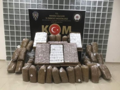 Manisa Il Emniyet Müdürlügü Kaçakçilik ve Organize Suçlarla Mücadele Sube Müdürlügünce, Kaçakçilikla Mücadele Kanununa Muhalefet suçunun önlenmesine yönelik, Salihli, Kirkagaç ve Akhisar, Soma ve Turgutlu ilçelerimizde Istihbarat Sube Müdürlügü destekli operasyonlarda N.K. (39), Z.D. (59), A.K (41), O.O. (39), R.B. (31), I.B. (54) isimli 6 süpheli sahis yakalandi. Süpheli sahislarin ikamet, araç, isyeri ve depo olarak kullandigi yerlerde yapilan aramalarda ise toplamda 53 bin 160 adet doldurulmus sigara, 295 kilogram kiyilmis tütün, 5120 dal kiyilmis tütün ile dolu makaron, 6.75 kilogram bandrolsüz kiyilmis tütün, 1.76 kilogram bandrolsüz nargile tütünü, 506 Paket muhtelif markalarda gümrük kaçagi sigara, 20 paket muhtelif markalarda puro, 200 adet elektronik sigara, 140 adet cinsel içerikli macun, 20 adet cinsel içerikli jel ele geçirildi. Yakalanan 6 süpheli sahis hakkinda 5607 SKM suçu kapsaminda adli islemlere baslandigi bildirildi.