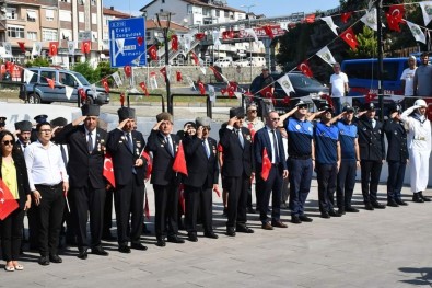 30 Agustos Zafer Bayrami’nin 102. yildönümü kutlamalari kapsaminda Hükümet Konagi önünde bir araya gelen protokol Anit önüne kadar kortej yürüyüsü gerçeklestirdi. Anit önüne Kaymakamlik, Belediye Baskanligi ve Garnizon Komutanligi çelenkleri sunuldu. Saygi durusunda bulunulmasinin ardindan Istiklal Marsi okundu. Törende günün anlam ve önemini belirten konusmalarin ardindan tören sona erdi.