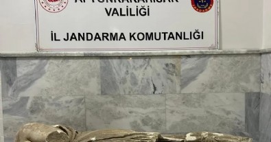 Afyonkarahisar’da jandarma ekipleri 2 şahsı ellerinde bulunan ve Roma dönemine ait olduğu değerlendirilen 1.5 metre uzunluğundaki heykeli satmak isterken yakaladı.