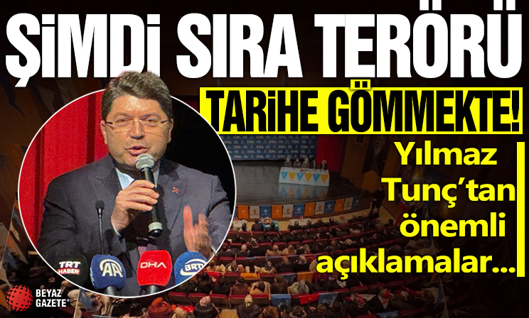 Adalet Bakanı Yılmaz Tunç, “Şimdi sıra terörü, silahlarıyla beraber tarihe gömmekte. İnşallah bunun için ve terörü bitirerek terör sorunundan da Türkiye'yi, milletimizi kurtaracağız. İnşallah, birlik beraberliğimizi güçlendireceğiz” dedi.