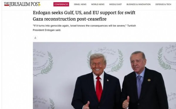 Jerusalem Post gazetesi de Gazze ateşkesinden, Gazze'nin yeniden inşasına, Filistin devletinin birçok ülke tarafından tanınmasına kadar Başkan Erdoğan'ın konu hakkındaki açıklamalarına geniş yer ayırdı.