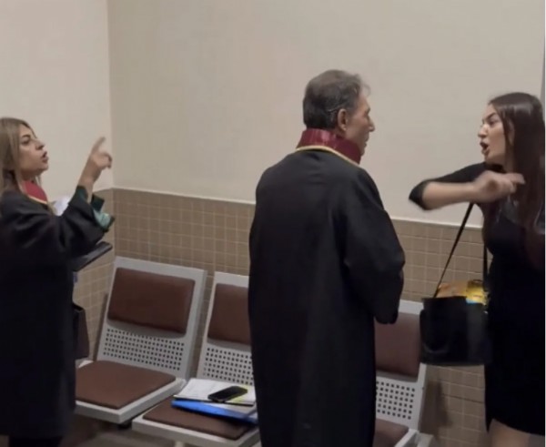 Davayı takip etmeye gelenler sanık avukatlarına tepki gösterirken, adliye koridorlarında da iki tarafın avukatları arasında sesler yükseldi.