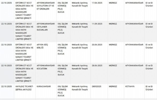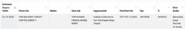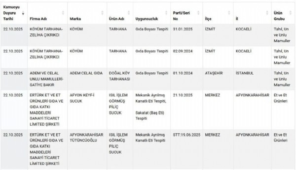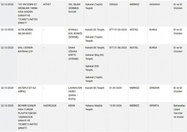 Güncellenen listede lahmacundan bala kadar birçok üründe halkın sağlığını tehlikeye düşürecek ürünler tespit edildi.