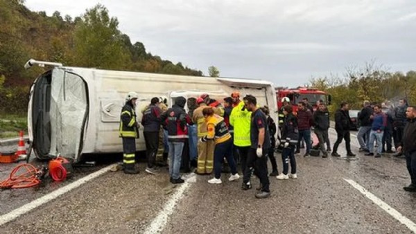 Bartın'dan Organize Sanayi Bölgesi'ne işçi taşıyan Birol E. yönetimindeki servis aracı, Bartın-Karabük yolu Muratbey köyü mevkisinde kontrolden çıkarak devrildi. Vatandaşların ihbarı üzerine olay yerine çok sayıda polis, itfaiye, sağlık, AFAD ve jandarma ekipleri sevk edildi.