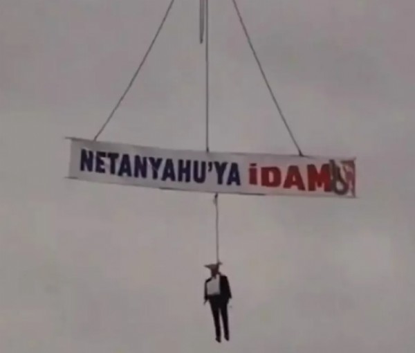 Trabzon’da kaydedilen ve 'Netanyahu'ya idam' yazılı mankenin viçnle sallandığı görüntü, İsrail medyasında gündem oldu.