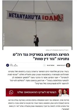 İsrail merkezli KANN News, “Türkiye'de Başbakan Netanyahu'nun resminin yer aldığı bir maket, Trabzon'da bir vince asıldı ve yanına ‘Netanyahu'ya idam' yazılı bir pankart asıldı” ifadelerini kullandı.