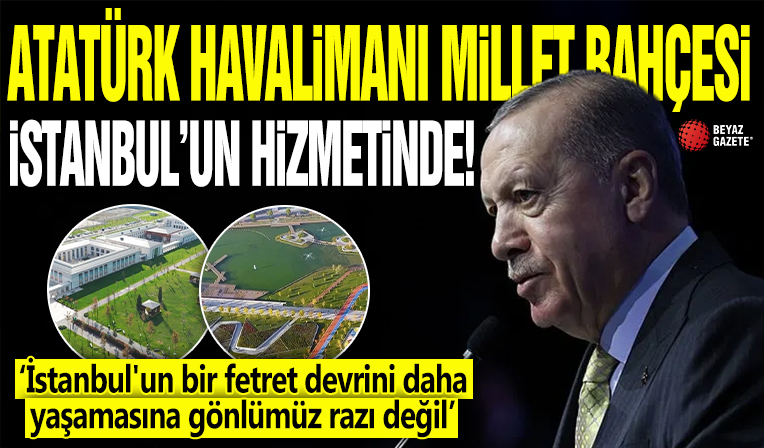 Cumhurbaşkanı Recep Tayyip Erdoğan, "Atatürk Havalimanı Millet Bahçesi Açılış Töreni"nde önemli açıklamalarda bulundu. Cumhurbaşkanı Erdoğan, "Sabotajlara rağmen tarihi yapılar inşaa ediyoruz İstanbulumuzu işbilmez, tarih ve medeniyet şuurundan yoksun kifayetsizlerin insafına terk etmiyoruz. İstanbul bizim göz bebeğimizdir. Bu aziz şehrin bir Fetret Devri daha yaşamasına gönlümüz asla razı değil." dedi.