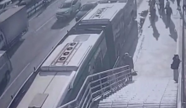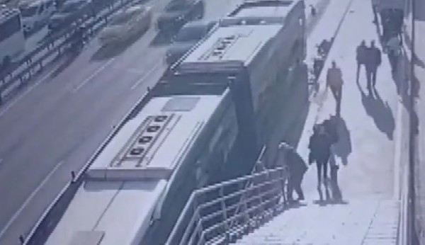 Görüntülerde, tekerlekli sandalyesiyle metrobüs yoluna düşen Hüseyin C.'ye metrobüsün çarptığı anlar yer aldı.