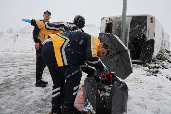 Nevşehir'de bir işçi servisi, etkili olan kar yağışı nedeniyle kayganlaşan yolda refüje çarparak devrildi. Kazada yaralanan 14 kişi hastaneye kaldırıldı.
