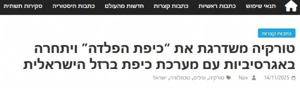 İsrail basını Türkiye'nin hava savunma kapasitesini hızla yükselttiğine vurgu yaparak, Tel Aviv'in Çelik Kubbe konusundaki endişelerini gündeme taşıdı. "Türkiye, 'Çelik Kubbe'yi geliştiriyor ve bu durum İsrail açısından da önemli!" ifadelerini kullandı.