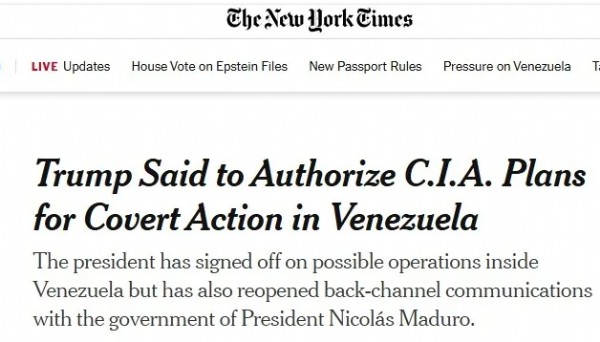 ABD basınına göre, ABD Başkanı Donald Trump'ın Merkezi İstihbarat Teşkilatına (CIA) Venezuela'da yürütülebilecek gizli operasyon için tam yetki verdiği ifade edildi. 15.000 personel ile birlikte Amerikan donanmasının en büyük uçak gemisi Gerald R. Ford'un Karayipler'e konuşlandırılması 1962 Küba Füze Krizi'nden bu yana bölgeye yapılan en büyük ABD askeri sevkiyatlarından biri olarak değerlendiriliyor.