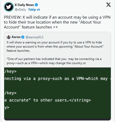 Mikita Bier, söz konusu yeni profil unsurlarının 18 Kasım 2025 gibi erken bir tarihte kullanıma sunulabileceğini işaret etti. Ortaya çıkan önizlemelere ve sızan bilgilere göre, sistem bir kullanıcının proxy veya VPN üzerinden bağlandığını teknik olarak tespit ettiğinde profiline otomatik bir uyarı ibaresi ekleyecek. Ancak bu durum, X kullanıcılarının platformda Sanal Özel Ağ (VPN) veya benzeri gizlilik araçlarını kullanmasının engelleneceği anlamına gelmiyor; sadece bu araçları kullananların profillerinde ek bir bilgilendirme yer alacak. Amaç şeffaflık ve trolleri engellemek olarak açıklansa da bu durum, küresel çapta gizlilik savunucuları tarafından büyük bir endişeyle karşılandı.