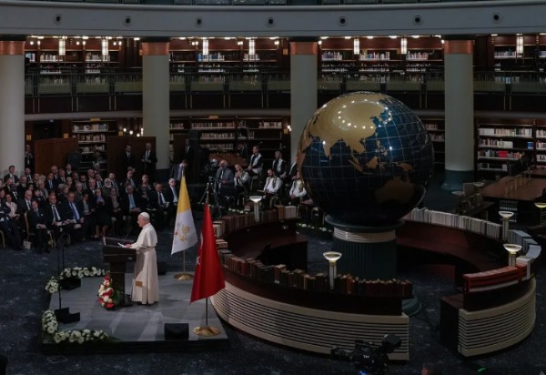 Heyetler arası görüşmeden sonra Cumhurbaşkanı Erdoğan ve Papa 14. Leo, Cumhurbaşkanlığı Millet Kütüphanesinin Cihannüma Salonu'nda gerçekleştirilen Sivil Toplum ve Diplomatik Heyet Toplantısı'na katıldı.