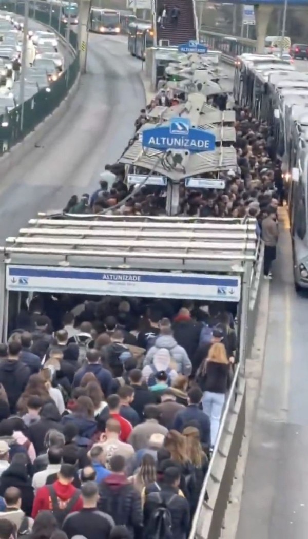 İstanbullular bu sabah Altunizade metrobüs durağına ulaşmak için büyük çile çekti. Vatandaşlar, yoğunluk nedeniyle dakikalarca üst geçitte beklemek zorunda kaldı.