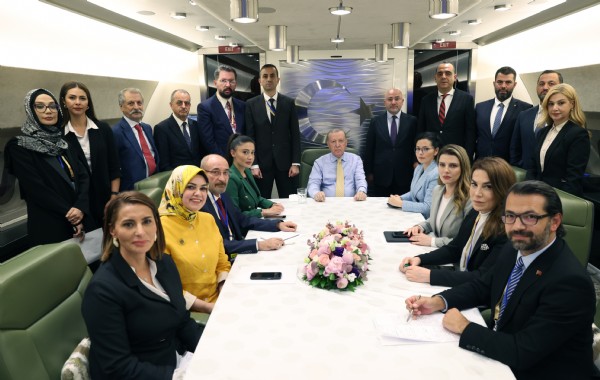 Cumhurbaşkanı Recep Tayyip Erdoğan, Azerbaycan’ın Zafer Günü kutlamaları kapsamında gerçekleştirdiği Bakü ziyaretinin ardından dönüş yolunda içinde Melissa Bağcı'nın da bulunduğu gazetecilerin sorularını yanıtladı.Cumhurbaşkanı Erdoğan, Karabağ zaferinden Gazze’ye insani yardımlara, Suriye’den F-16 ve F-35 görüşmelerine kadar birçok konuda önemli açıklamalarda bulundu.