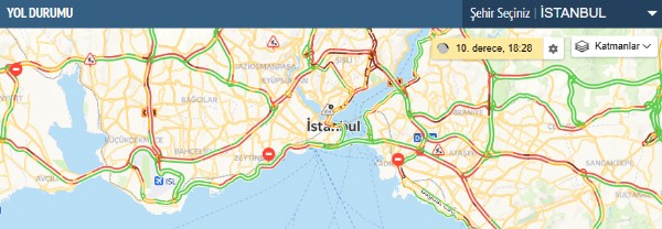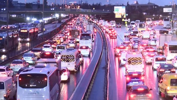 İstanbul'da akşam saatlerinde trafik yoğunluğu yüzde 85 olarak ölçüldü. Fenerbahçe-Galatasaray derbisi öncesi Kadıköy’de trafik yoğunluğu oluşurken, stada yönelen taraftarlar nedeniyle araç kuyrukları oluştu. Yağmur ve soğuk havaların etkisiyle vatandaşların kendi araçlarını kullanmasının etkisiyle trafik iyice kilitlendi. E-5 Karayolu Avrupa ve Anadolu yakaları istikametine giden araçlar ilerlemekte zorlanırken uzun araç kuyrukları oluştu.