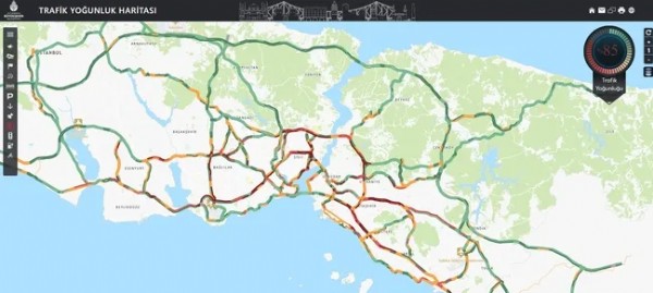 İstanbul'da trafik yoğunluğu yağmur ve derbinin de saati nedeniyle iyice arttı.İstanbul Büyükşehir Belediyesi Trafik Yoğunluğu Haritası verilerine göre trafik yoğunluğu yüzde 85 olarak ölçüldü.