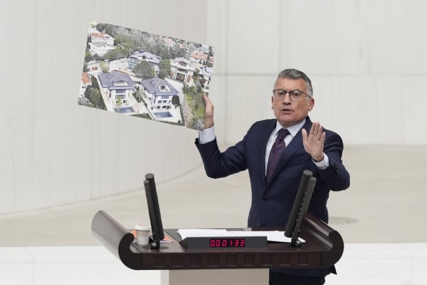TBMM Genel Kurulu'nda 2026 yılı bütçesinin tümü üzerindeki görüşmeler kapsamında kürsüye çıkan AK Parti Grup Başkanı Güler, üzerinde milyon dolarlık villalar ile arazinin yer aldığı fotoğrafları Genel Kurul'a ve ön sırada oturan CHP lideri Özel'e göstererek iddianamenin villalarla ilgili bölümlerini okudu ve arka arkaya sorular yöneltti.