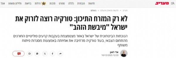 Maariv gazetesinde yer alan 'yalnızca Orta Doğu değil: Türkiye, İsrail'i 'Altın Kıta'dan uzaklaştırmak istiyor' başlıklı habere göre, İsrail'in Güney Amerika'daki varlığı, askeri alanın ötesine geçen siyasi çatlaklar nedeniyle daralıyor, Türkiye ise savunma sanayisi aracılığıyla nüfuzunu genişletiyor.