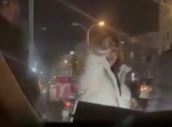 Görüntülerde, bir kadının diğer aracın kapısını tekmelediği, çevredekilerin ise olaya müdahale etmeye çalıştığı anlar yer aldı.
