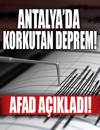 Antalya'nın Aksu ilçesinde Richter ölçeğine göre 3.8 büyüklüğünde deprem meydana geldi. Depremde herhangi bir olumsuzluk yaşanmadı.Afet ve Acil Durum (AFAD) Yönetimi Başkanlığı verilerine göre; saat 16.11'de merkez üssü Aksu ilçesi olan 3.8 büyüklüğünde deprem kaydedildi. Zeminden 50.53 kilometre derinlikte olan depremde, ilk belirlemelere göre herhangi bir olumsuzluk yaşanmadı.