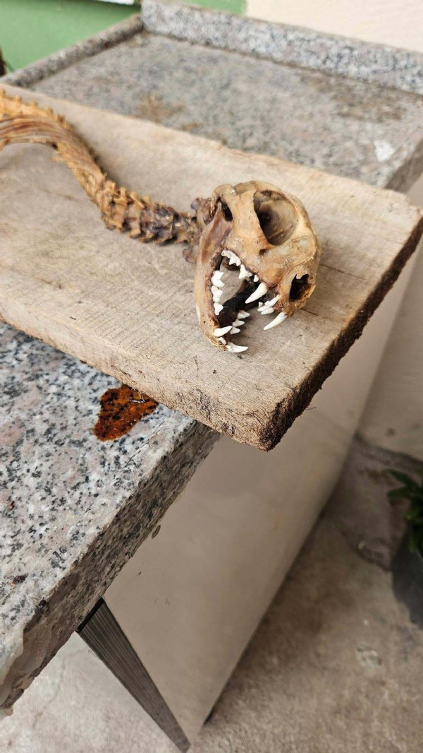 Artvin’de Yavuz Turan tarafından yırtıcı dişlere sahip 55 santimetre boyunda hayvan iskeleti bulundu. İskelet, DKMP tarafından hayvanın türünün belirlenmesi için incelenmeye alındı.