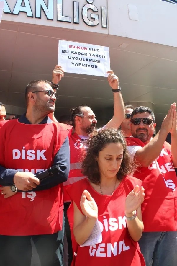 Belediye'den alacaklarını alamadıkları için kiralarını ödeyemediklerini, borç içinde yüzdüklerini dile getiren belediye işçileri, hacizle boğuştuklarının da altını çizdi. CHP'li Kartal Belediyesi'nde işçi dramının yaşandığına dikkat çeken işçiler, 'Bu eylem, nafakasını ödeyemediği için çocuğunu göremeyen bir babanın haykırışıdır. Bizler bugüne kadar ülkemizdeki ekonomik zorlukları, AKP iktidarının belediyelere yönelik SGK kesintilerini, son dönemde CHP belediyelerine yönelik operasyonları göz önünde bulundurarak sabrettik. Sendika yönetimi olarak da, işçiler olarak da iyi niyetimizi koruduk. Ancak geldiğimiz noktada görüyoruz ki; bu sabır ve iyi niyet, ne yazık ki Kartal Belediyesi yönetimi tarafından kötüye kullanılmıştır' dedi.