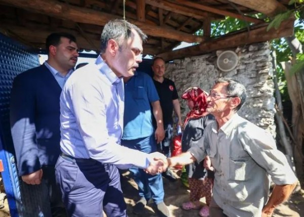 Çevre, Şehircilik ve İklim Değişikliği Bakanı Murat Kurum, orman yangınında hasar gören konutların temelini, evini kaybettiği için gözyaşı döken Ödemişli 60 yaşındaki Cavit Özer ve 56 yaşındaki Hüseyin Köymen ile birlikte attı.