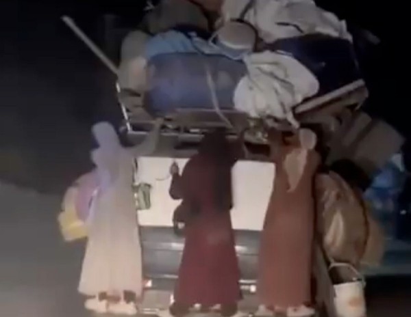 Gece saatlerinde çekilen görüntülerde, Gazze'de bir grubun, yanlarına alabildikleri eşyalarını yükledikleri bir araçla güneye doğru kaçışını gözler önüne seriyor.