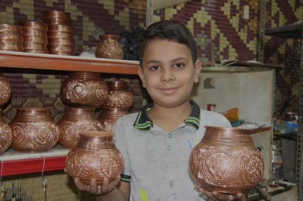 Gaziantep'te bakırcı ustası babasının yanında 3 yıl önce meslek öğrenmek için işe başlayan 10 yaşındaki Yakup Can Bilici, yeteneğiyle yılların ustalarına taş çıkartıyor.