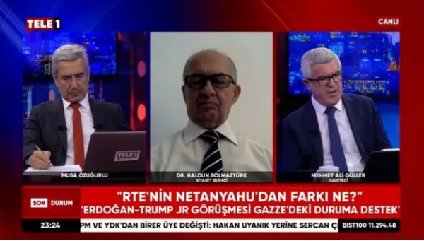 Başkan Erdoğan'ın ABD ziyaretinin konuşulduğu programda TELE 1 ekranlarında verilen KJ'de 'RTE'nin Netanyahu'dan farkı ne?' yazısı ile bir skandala imza atıldı. Dünyada mazlumların ve küresel vicdanın sesi olan Başkan Recep Tayyip Erdoğan'ı Gazze kadın, çocuk demeden yüz binlerce insanı katleden İsrail'in eli kanlı soykırımcı Başkanı Benyamin Netanyahu'ya benzetilmesi toplumun her kesiminden tepki topladı.