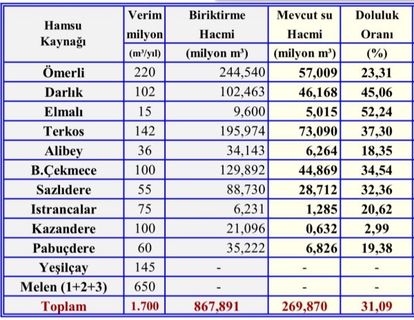 İstanbul'da kuraklık için tehlike çanları çalıyor...İstanbul Su ve Kanalizasyon İdaresi (İSKİ), yaz aylarının neredeyse yağışsız geçmesinin ardından kentteki barajların doluluk oranının yüzde 31,09 seviyesine gerilediğini açıkladı.