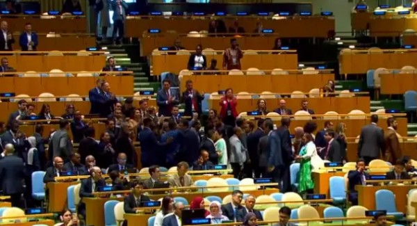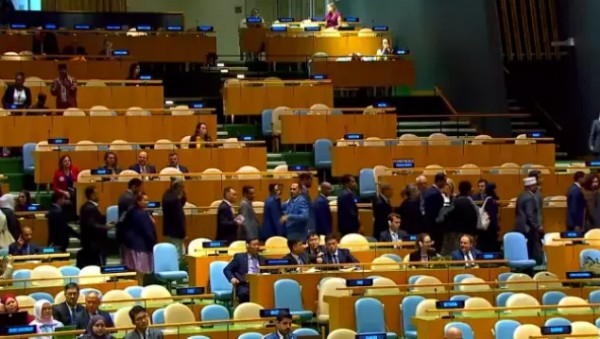 Birleşmiş Milletler Genel Kurulu oturumunda, İsrail Başbakanı Binyamin Netanyahu konuşmasına başlarken çok sayıda ülkenin temsilcisi, Gazze'deki sivil kayıplara ve insan hakları ihlallerine tepki olarak salonu terk etti. Yaşanan protesto nedeniyle Netanyahu konuşmasını neredeyse tamamen boş bir salona yaptı.