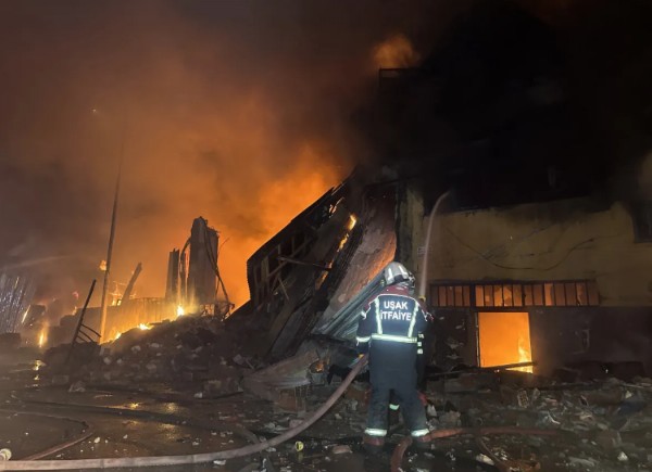 Uşak'ta tekstil deposunda ve fabrikada çıkan yangına ekiplerin müdahalesi sürüyor.
