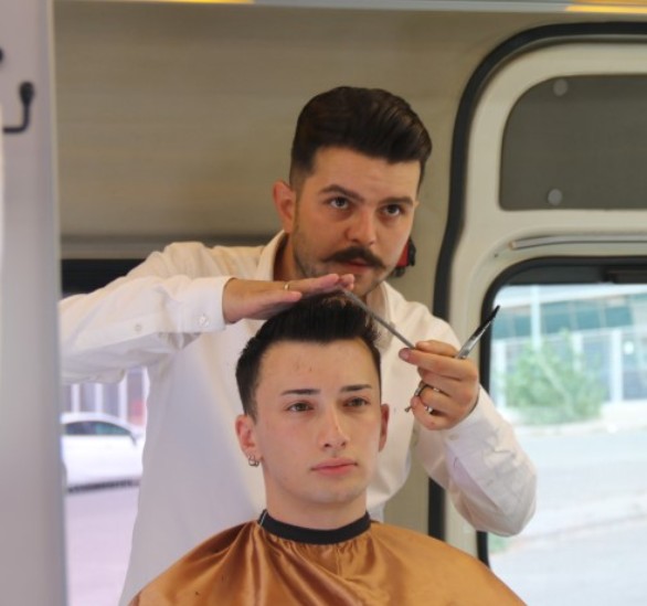 Eskişehir'de erkek kuaförlüğü yapan 28 yaşındaki Caner Yıldırım farklı bir proje geliştirerek müşterilerine hizmet vermeye başladı. Önceden şehirlerarası tur firmasında çalışan minibüsü satın alan Yıldırım, aracın içini berber dükkânından farksız bir biçimde dizayn ederek müşterisinin ayağına gitmeye başladı. Koronovirüs pandemisinde aklında şekillenen projeyi bu yıl hayata geçiren esnaf 1 milyon 250 bin TL harcayarak seyyar berberini kurdu. Özel müşterilerinin ayağına giderek hizmet veren araç için ehliyetini büyüten Yıldırım ileride ise bir otobüsü aynı şekilde dizayn edip şehirler arası hizmet vermeyi planlıyor.Berber dükkânındaki her şey bu araçta