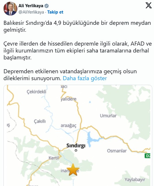 İçişleri Bakanı Ali Yerlikaya, çevre illerden de hissedilen depremle ilgili, AFAD ve ilgili kurumların tüm ekiplerinin saha taramalarına başladığını açıkladı.
