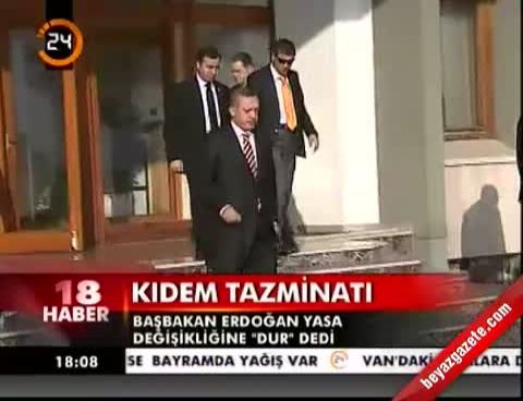 Erdoğan'ın, son Bakanlar Kurulu toplantısında Çalışma ve Sosyal Güvenlik Bakanı Faruk Çelik'e, 'Artık kıdem tazminatı konusunu gündeminizden çıkarın ' talimatı verdiği öğrenildi.