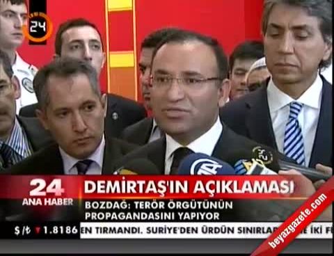 Başbakan Yardımcısı Bekir Bozdağ, BDP Genel Başkanı Selahattin Demirtaş'ın, Şemdinli-Hakkari arasındaki 400 kilometrelik bölgenin terör örgütünün kontrolünde olduğuna ilişkin iddiasıyla ilgili, ''Bu iddiadan öte bir yalan. Selahattin Demirtaş'ın, PKK terör örgütünün gerçekleştirmesini istediği belki bir hayali ama büyük bir yalan. Terör örgütünün bu anlamda bir propagandasıdır. Türkiye Cumhuriyeti devletinin, ülkenin her yerinde egemenliği tamdır ve ülkenin her yerinde devletimiz, hükümetimiz, güvenlik güçlerimiz hakimdir. Herhangi bir yer bunun dışında değildir'' dedi.
