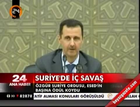 Özgür Suriye Ordusu, Suriye Devlet Başkanı Beşar Esed'i ''ölü ya da diri'' teslim edene 25 milyon dolar ödül verileceğini bildirdi.