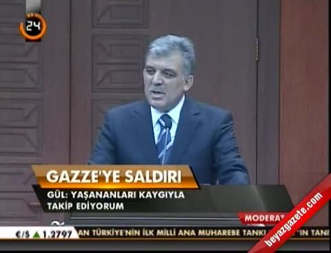 Saldırıların olacağının bir süredir uluslararası basında konuşulduğunu, İsrail'de yapılacak seçimlerden önce böyle bir saldırının yapılacağının yazılıp çizildiğini dile getiren Gül, Gazze'ye daha önce yapılan saldırının da bir seçim öncesine rastladığını anımsattı. Gül, sözlerini şöyle sürdürdü: "Kaygılı bir şekilde takip ediyorduk ve dünkü saldırıların neticesinde bir çok çocuğun, ayrıca kadınların, ikiz çocuk taşıyan hamile bir kadının olduğu... Bütün bunlar göz önüne alınırsa bunu anlayışla karşılamak asla mümkün değil, tam tersine şiddetle kınamak gerekir.