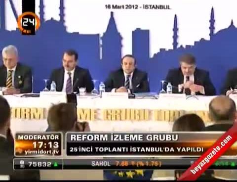 Reform İzleme Grubu 25. Toplantısı, Avrupa Birliği Bakanı ve Başmüzakereci Egemen Bağış 'ın ev sahipliğinden yapılıyor. İstanbul Portaxe 'de yapılan toplantıya Bağış 'ın yanı sıra; İçişleri Bakanı İdris Naim Şahin, Dışişleri Bakanı Ahmet Davutoğlu , Adalet Bakanı Sadullah Ergin ve çok sayıda üst düzey bürokrat katıldı. Katılımcı bakanlar, toplantı öncesi Boğaz manzaralı hatıra fotoğrafı çektirdi.