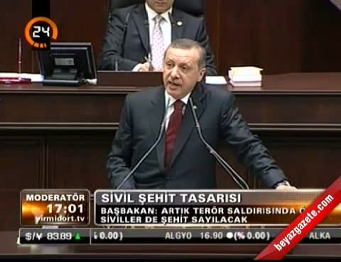 Başbakan Erdoğan, şehit kapsamını genişleteceklerini, artık terör eyleminde ölen sivillerin de kanunen şehit sayılacağını söyledi.