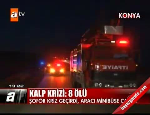 Konya'nın Kulu ilçesinde, hafif ticari aracın semazenleri taşıyan minibüsle çarpışması sonucu 8 kişi öldü, 6 kişi yaralandı.