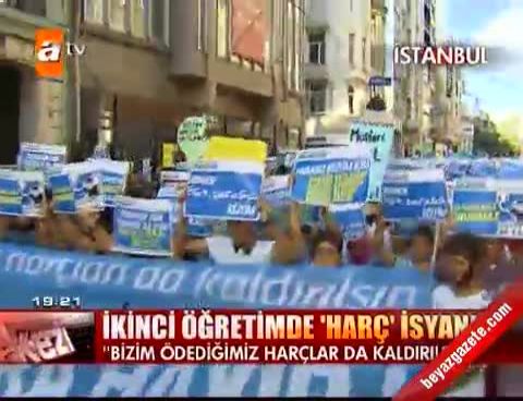 Taksim’den Odakule’ye yürüyen öğrenciler tüm üniversitelerde harçların kaldırılmasını istedi. İnternet ortamından ‘İkinci öğretim harçlarının kaldırılmasına sessiz kalmayalım’ sloganıyla örgütlenen yaklaşık bin öğrenci Taksim Meydanı’nda buluştu. ‘İkinci öğretim harçları da kaldırılsın. Harçlara hayır’ yazılı pankart açan öğrenciler, İstiklal Caddesi üzerinden yürüyüşe geçti. Öğrenciler yürüyüş boyunca ‘Harçlara hayır’ , ‘Parasız eğitim istiyoruz’, ‘Eğitimde gece tarifesine hayır’, ‘Müşteri değil öğrenciyiz’ şeklinde sloganlar attı. Odakule önüne gelen öğrenciler bir süre oturma eylemi yaptı. Burada grup adına bir açıklama yapan Utku Oğul, hafta başında Başbakan Yardımcısı Bülent Arıç’ın birinci öğretim ve açık öğretim öğrencilerinin harç parası ödemeyeceğini açıkladığını hatırlatarak “Kararın ayrıntılarında ise ikinci öğretim, uzaktan eğitim, yüksek lisans ve doktora öğrencilerinden yine harç alınacağı, yabancı dille eğitim gören öğrencilerin bir buçuk kat harç vereceği vardı.” dedi.
