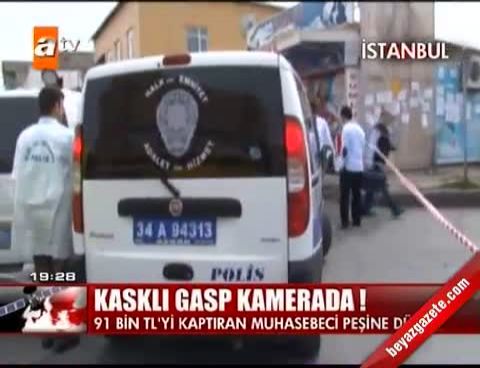Pendik'te, motosiklet kasklı bir kişi, bankadan para çeken muhasebeyici silah tehdidiyle gasp etti.